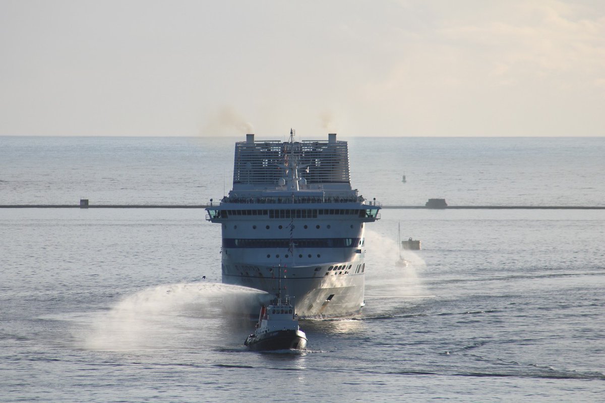 Look Back Gallery dated 2nd January 2023 and the flagship of Brittany Ferries the MV Pont Aven, being escorted by Serco-Group tugs with water cannons
