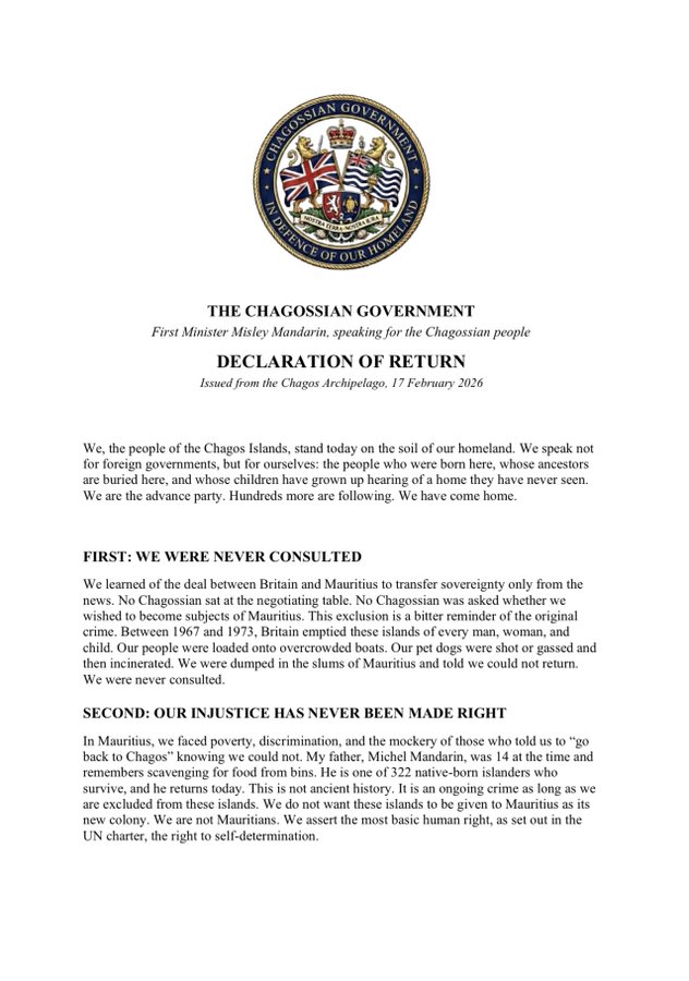 British citizens landing on their own sovereign territory. Time to end the farce of the Chagos surrender and self determination for the Chagossians.