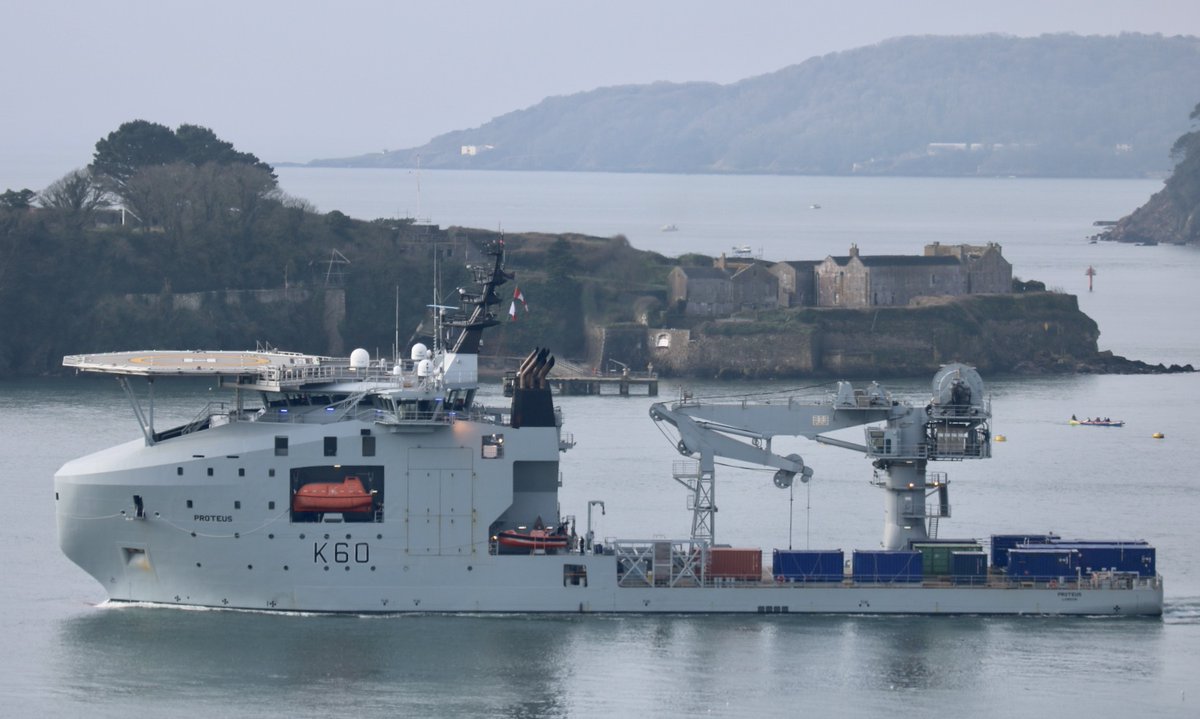 British surveillance ship @RFAProteus was spotted on our live webcam outbound in the Sound this morning.