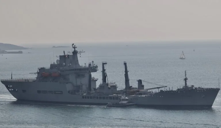 British surveillance ship RFA Proteus was spotted on our live webcam outbound in the Sound this morning. A multi-role vessel, tasked with helping to counter