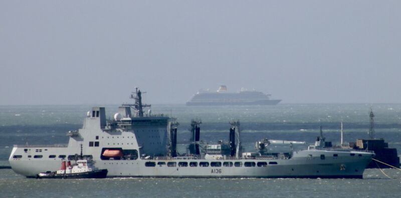 Look back gallery dated 9th April 2024 and @RFATidespring at anchor inside the Plymouth breakwater. In the distance the MV Spirit of Discovery cruise liner operated by Saga Cruises, and en route to the port of Cobh in Ireland.