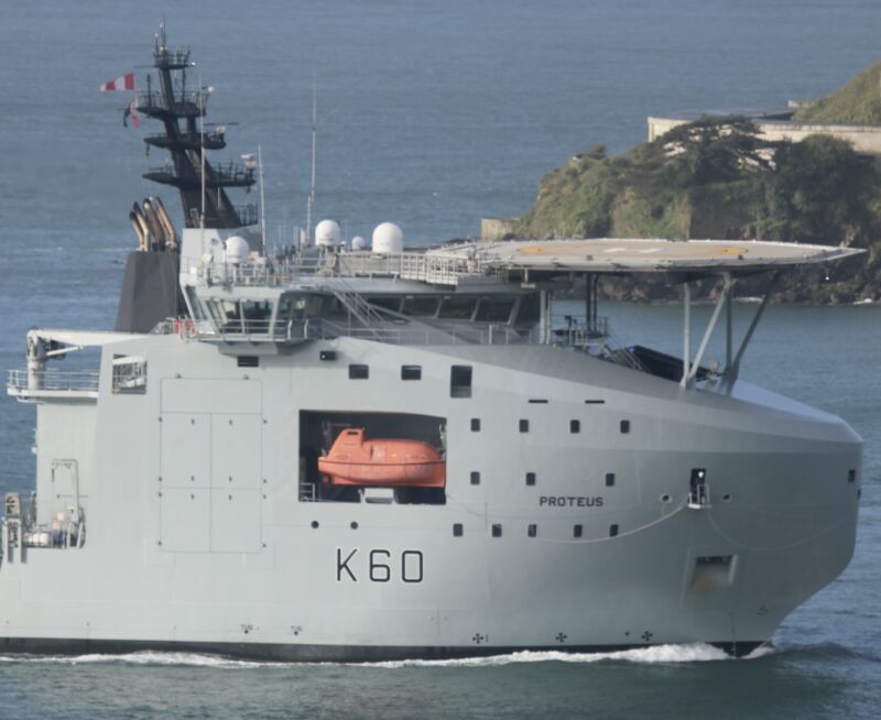 The Proteus is used for protecting undersea cables and other infrastructure and as a mothership for drones and other systems with crews from the Royal Navy and Royal Fleet Auxiliary.