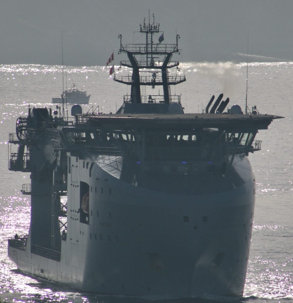 The Proteus seen here in Plymouth waters is used for protecting undersea cables and other infrastructure and as a mothership for drones and other systems with crews from the Royal Navy and Royal Fleet Auxiliary.