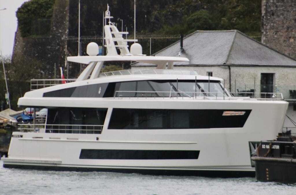 The new yacht recently departed the builder’s facilities in Waalwijk, the Netherlands, after successful sea trials in the North Sea, and now in Plymouth.