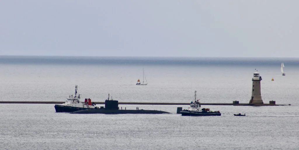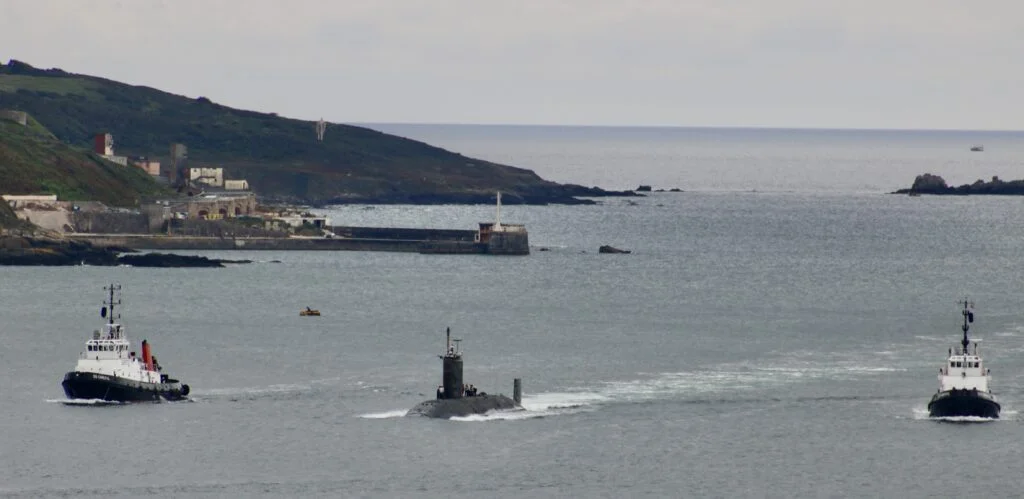Plymouth-based submarine HMS Triumph returned home today to a fanfare of hooters and sirens in the Sound after 102 days on deployment – and Westward Shipping News captured her homecoming in the Sound on our 24 hour webcam.