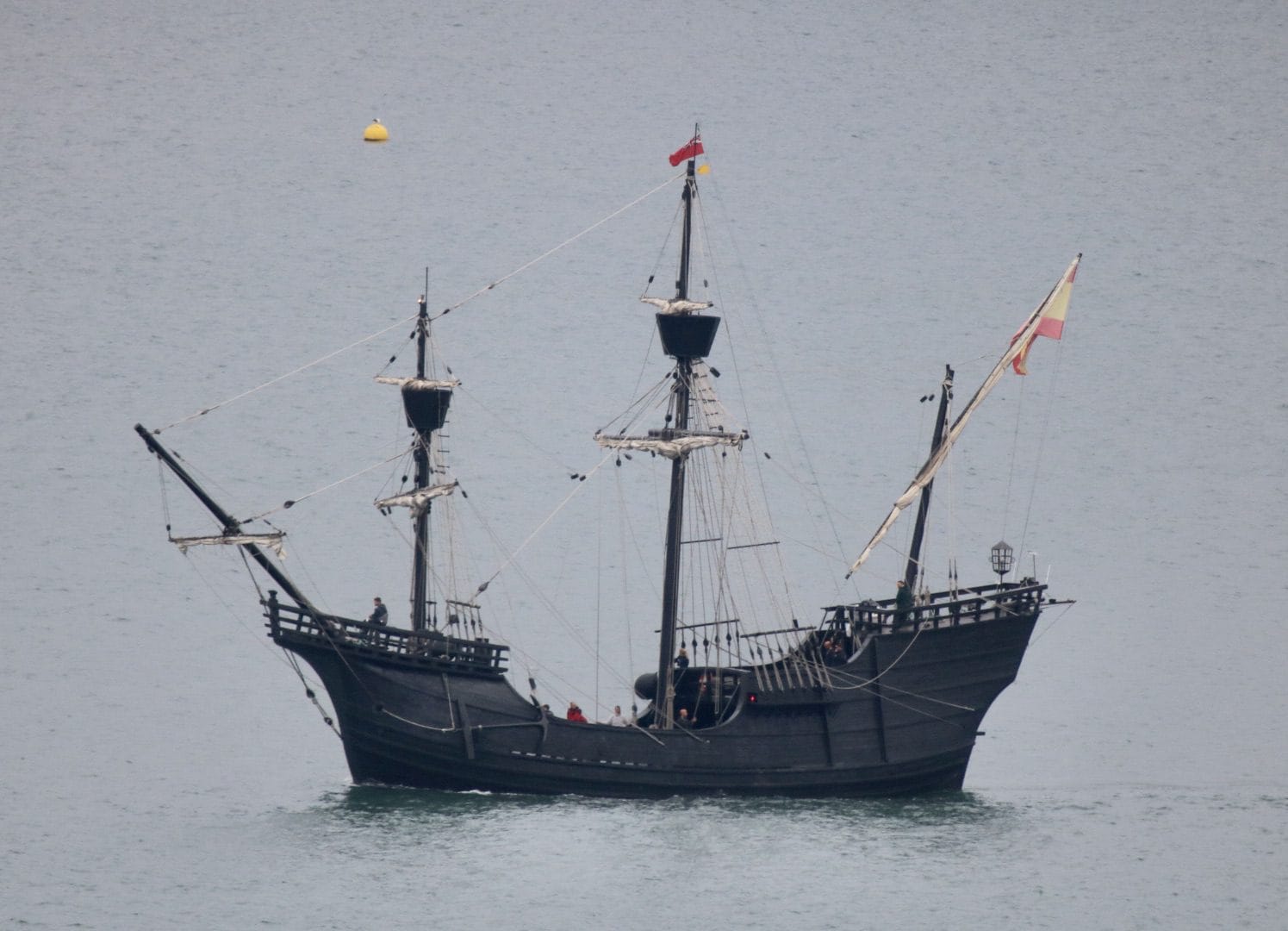 The replica Spanish galleon, the Nao Victoria, finally arrives in the Sound this morning and is escorted by a Plymouth pilot boat to the Barbican