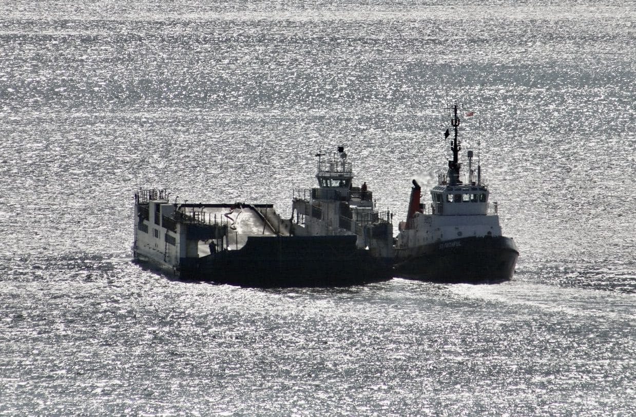 The Lynher ferry was delayed in being towed to Falmouth for its five-year annual refit because of bad weather and eventually left the sound on