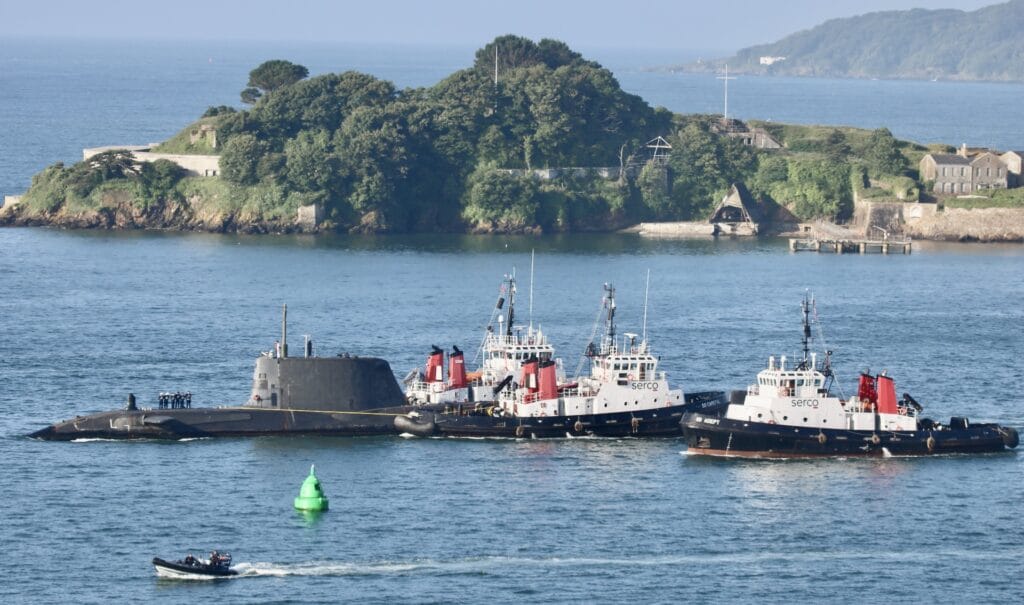 The usual tight security was in operation with Police, and Serco vessels escorting the Submarine outside of the Plymouth Breakwater.
