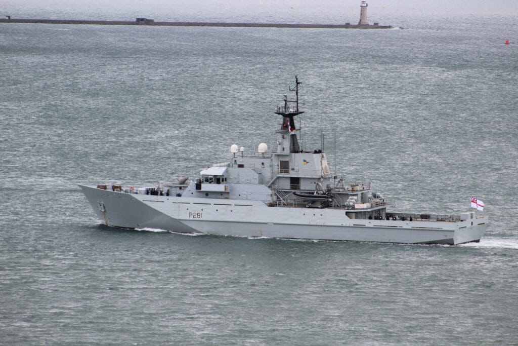 HMS Tyne inbound to HM Naval Base Devonport Westward Shipping Library picture in 2025.