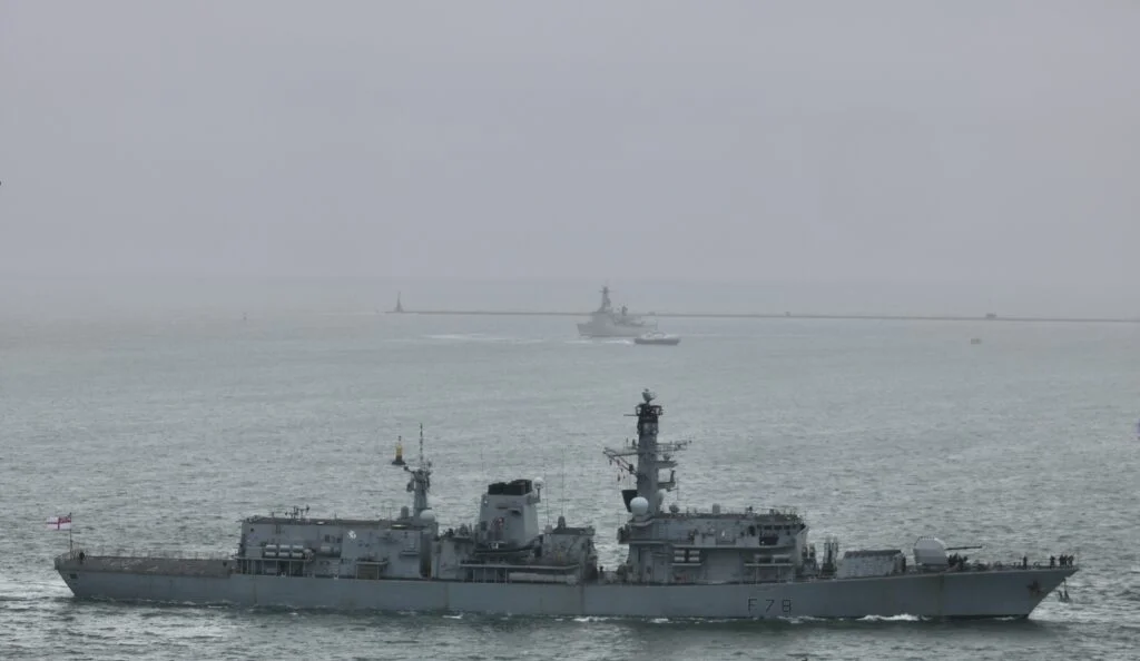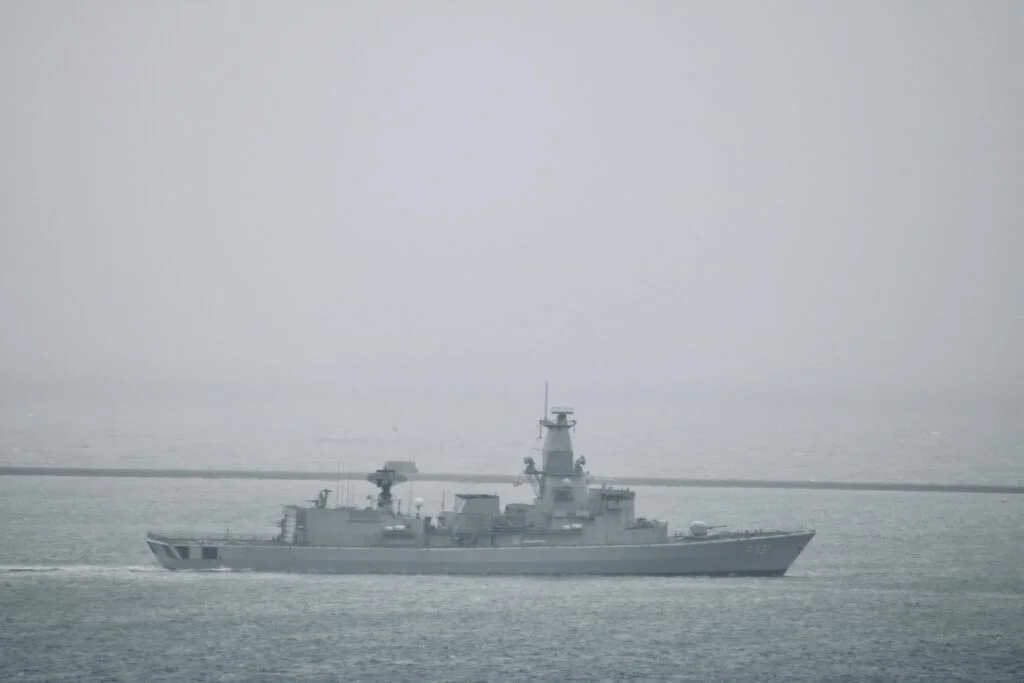 HMS Kent inbound to Devonport this afternoon with the Louise-Marie (F931) frigate of the Marine Component of the Belgian Armed Forces at the Plymouth Breakwater this afternoon.