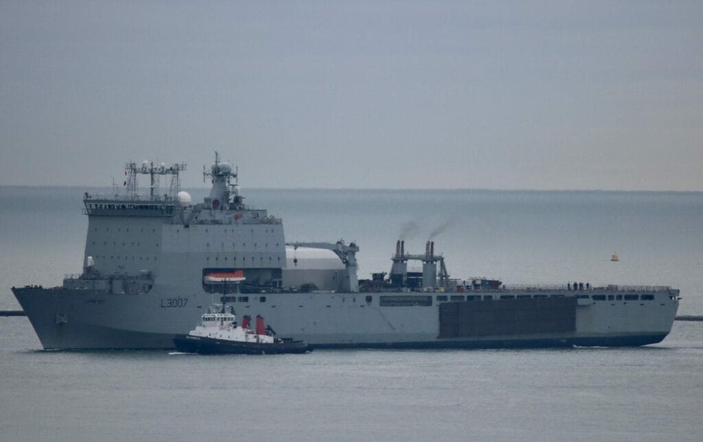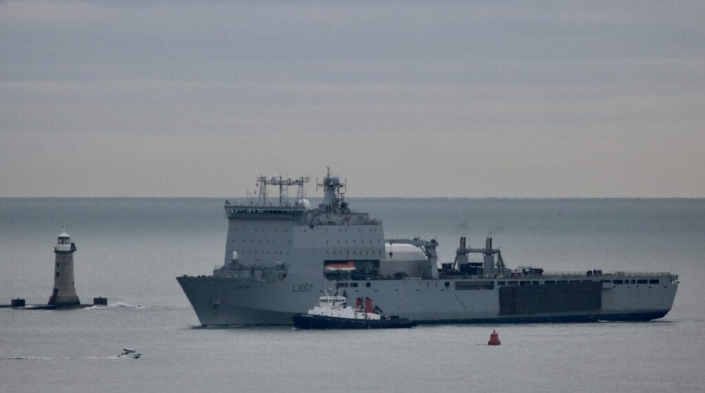 The 16,000-tonne Lyme Bay could be used to evacuate civilians, with medical personnel and supplies travelling to Gibraltar with Royal Marines and a helicopter, says @NavyLookout