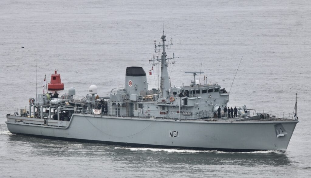 Portsmouth based mine-hunter HMS Cattistock arriving in the Sound this afternoon inbound to HMNB Devonport.