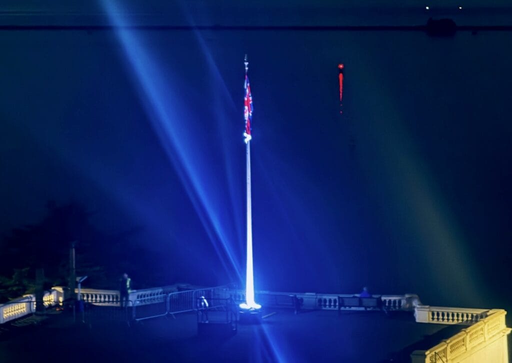 The Belvedere flagpole was illuminated in light at the end of day that in (VE) Day celebrations that will live in the memories of many.