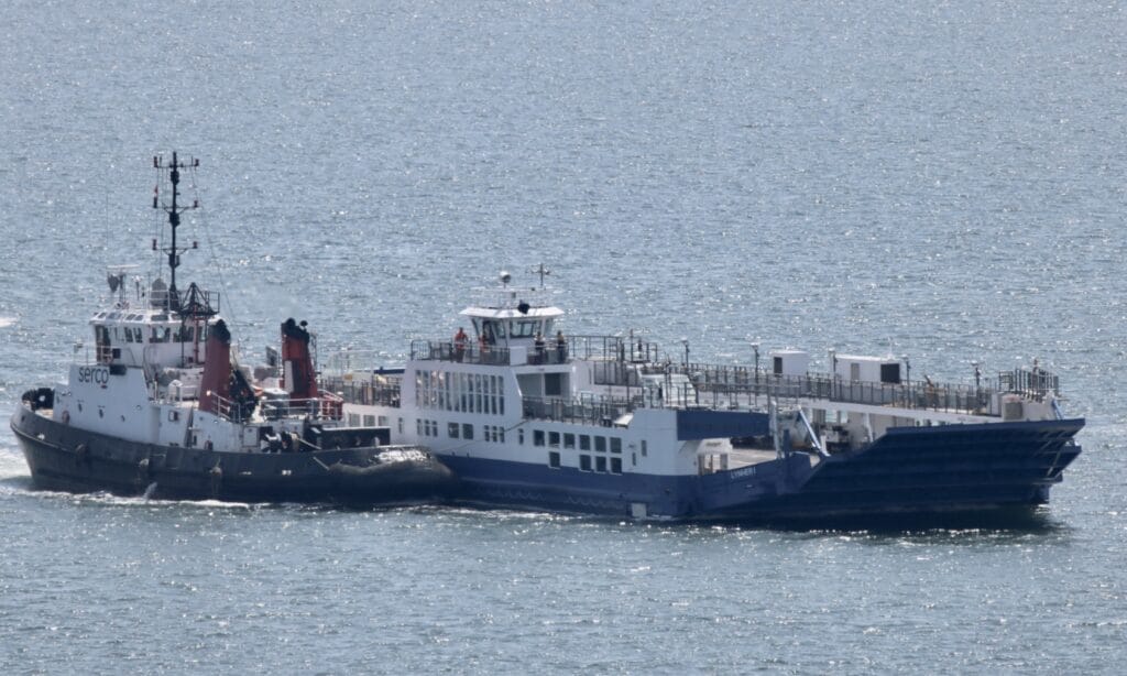 The Lynher ferry was spotted being towed up the coast from Falmouth today after completion of its five-year refit in dry dock.