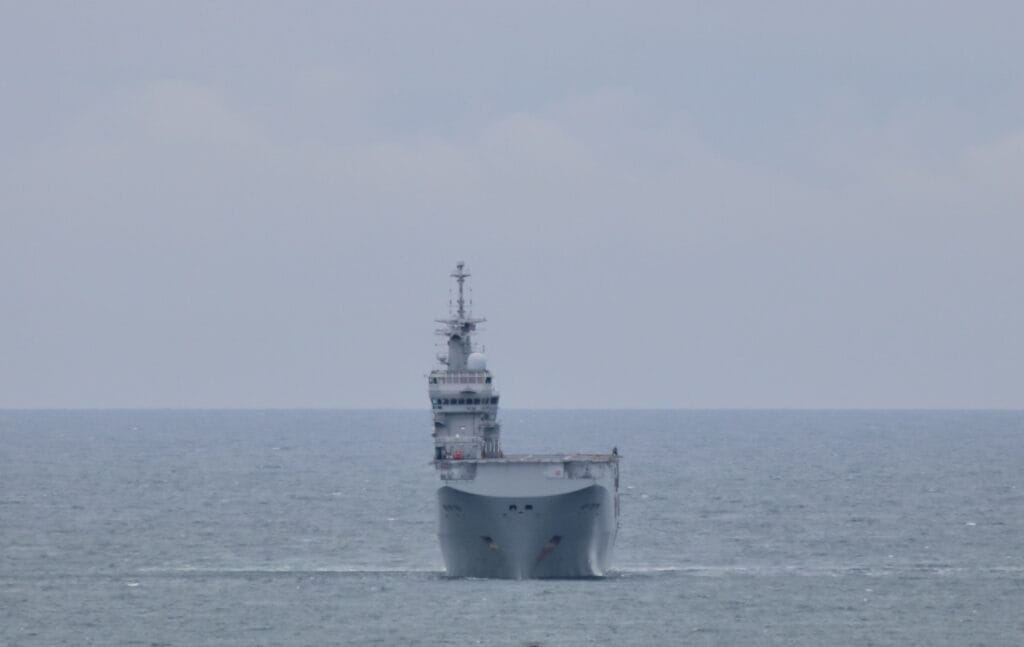 The French navy’s FS Tonnerre is near the Plymouth Breakwater this morning ahead of the next phase of exercise #Polaris25 which begins today in the Channel and Bay of Biscay.