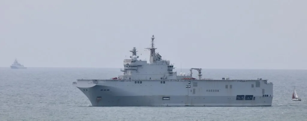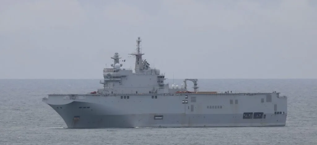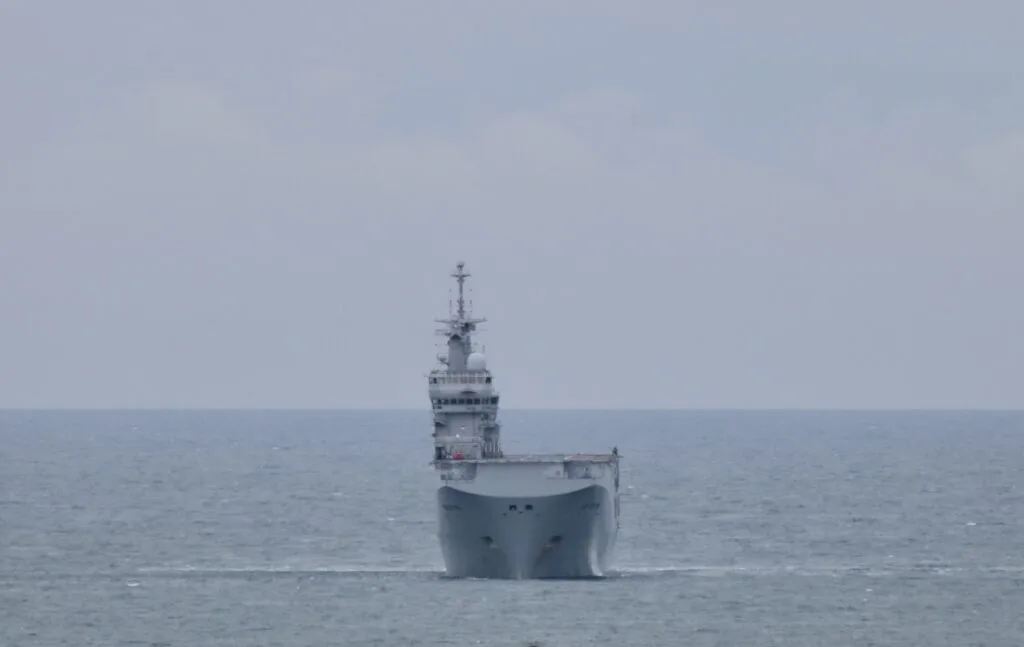 The French navy’s FS Tonnerre is near the Plymouth Breakwater this morning ahead of the next phase of exercise #Polaris25 which begins today in the Channel and Bay of Biscay.