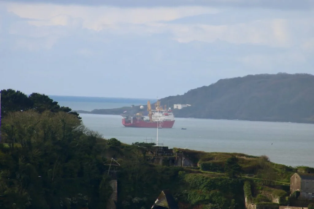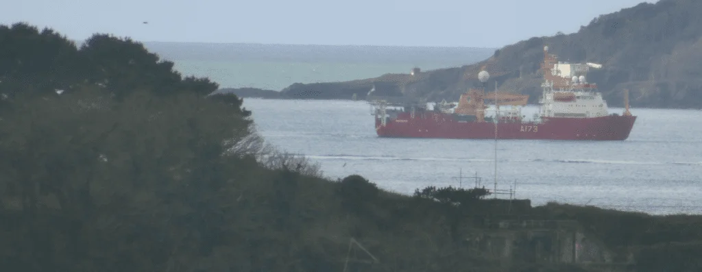 HMS Protector is playfully nicknamed the Royal Navy’s ‘Swiss army knife’ due to her famous red and yellow colour scheme, and you can see her LIVE on our 24 hour webcam in the Sound.